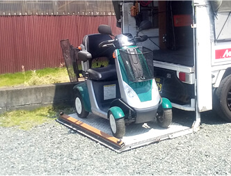 ナンバー無しや不動バイク・電動歩行機・農機など自走出来ない物の移動・運搬でお困りのお客さまもご相談ください。 パワーゲート・ラダーの使用で積み込みを楽に行えます。